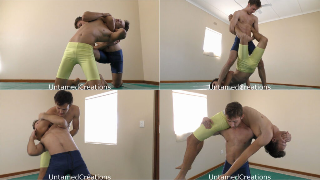 VJ570 Grappling with Greatness starring Parker and Dylan. NEW. Parker’s superman t-shirt is like a red rag to a bull, but Dylan soon learns that Parker has some awesome skills! This Untamed Creations video is 17 minutes long.